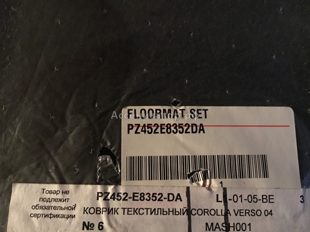 Коврики ворсовые TOYOTA COROLLA VERSO PZ452E8352DA