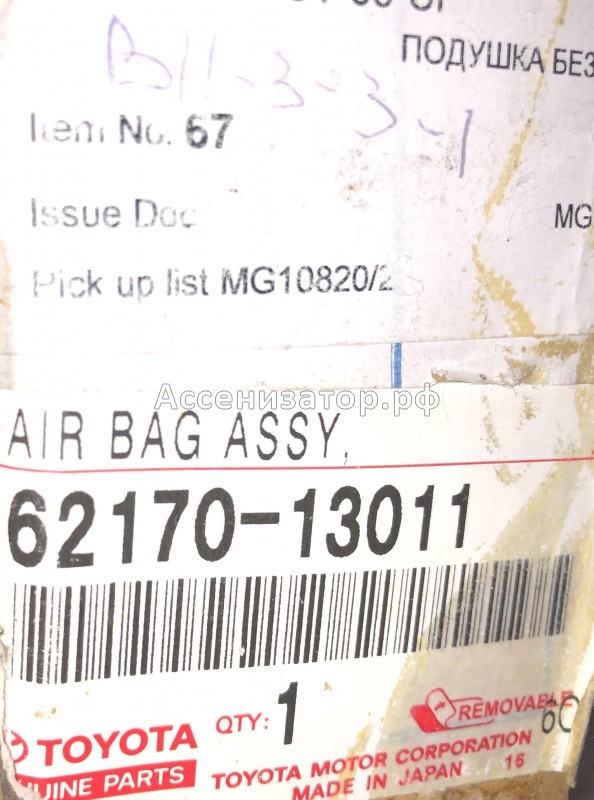 Купить Подушка безопасности боковая правая TOYOTA COROLLA Е120 6217013011 вы можете в компании Ассенизатор.рф, оформив заказ в интернет магазине, или